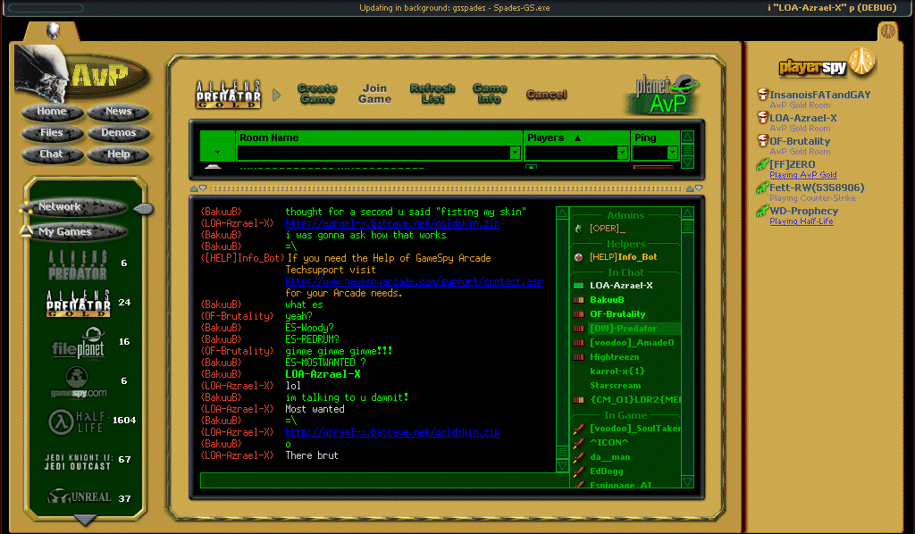 GameSpy Arcade goes gold ; AvP Gold! I've made a new skin for the Arcade gaming